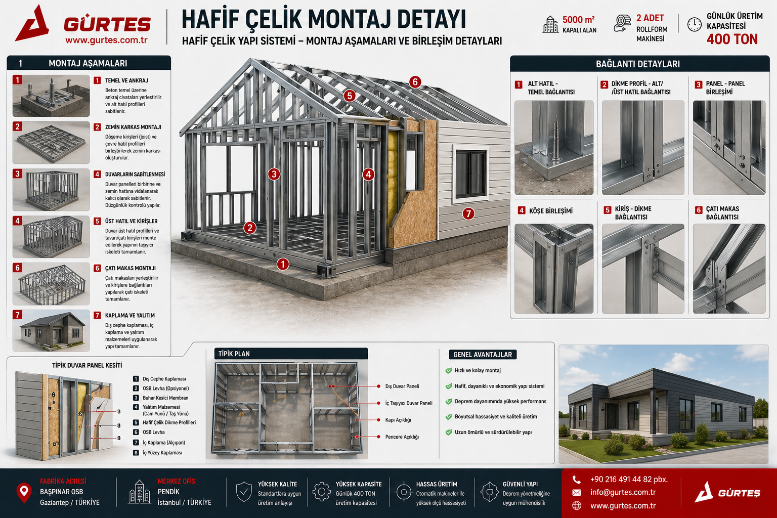 Gürtes İnşaat Mühendislik, hafif çelik ev, hazır çelik ev ve prefabrik yapı sistemleri alanında İstanbul ve Gaziantep Başpınar OSB’de faaliyet gösteren öncü firmalardan biridir.