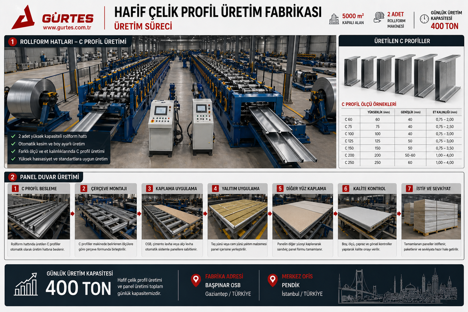 - C profil üretimi ve panel sistemleri